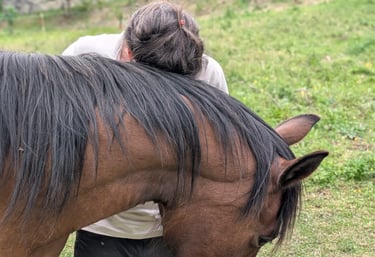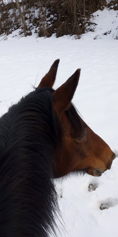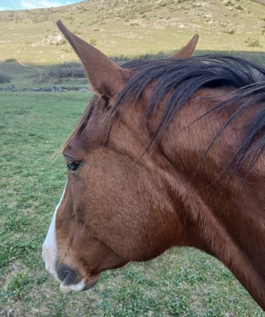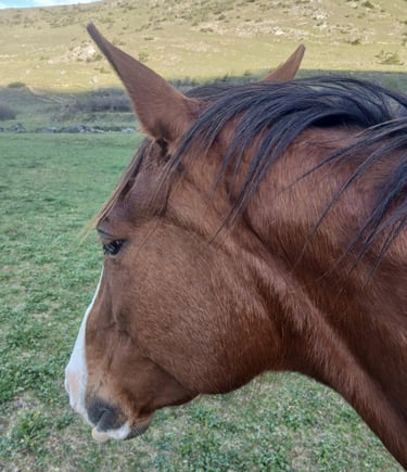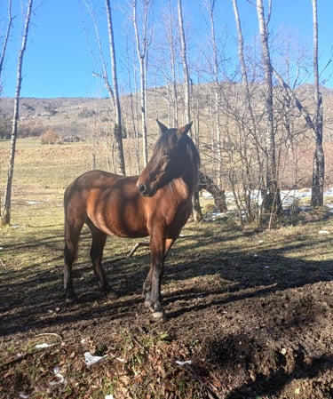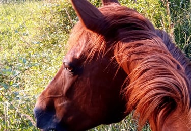 Camélia m'a montré la chaleur de coeur et d'âme, la rupture entre "je disais oui tout le temps et j'envoie balader maintenant, je suis une jument libre qui te fais confiance à toi, qu'à toi", la résilience, le soin psychique et corporel de traumatismes, l'amour d'une personne au-delà de ses douleurs, l'amour d'une autre jument malgré des tempéraments très éloignés sur certains points, le plaisir de s'éclater même handicapée, et un pacifisme équin à toute épreuve, et la polyvalence (traction, troupeau, saut, jeu...)