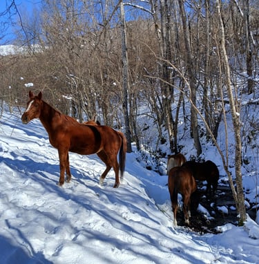 Presque 6 ans plus tard, vibrent en moi chaque jour de doux sentiments de gratitude, un mélange d'émotions d'amour et d'émerveillement d'avoir Tania à mes côtés, cherchant un peu de caresses légères; Camelia aussi, à la chaleur infinie; Una, avec son coeur dans le regard; Gandhi, au charisme respirant, et Eywa, sa grandeur jusqu'au bout des crins ^^. Ici, en ces espaces qu'on nous propose de tondre à dents de juments et de hongre. Et bien sûr, je me sens fière et joyeuse de sentir Leto vivre heureux ici à mes côtés, la présence de Tzaïa puissante de complétude.