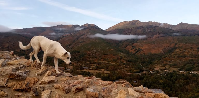 Tania a fait son bouchon de champagne, a fini par refuser les compétitions d'obstacles sans moi, n'a jamais été détendue pleinement en box, s'est montrée accueillante et douce dehors, m'a permis et montré une relation libre de selle, libre de mors, avec ou sans licol ou cordelette, m'aime de loin à partager notre présence, ou de très près, collées même, et se magnifie de jours en jours. Avec la finesse de sa motricité elle a adoré tout de suite la montagne et a contribué à ce que Camelia prenne confiance et se soigne le corps.